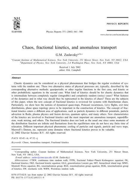 G M Zaslavsky Chaos Fractional Kinetics And Anomalous Transport